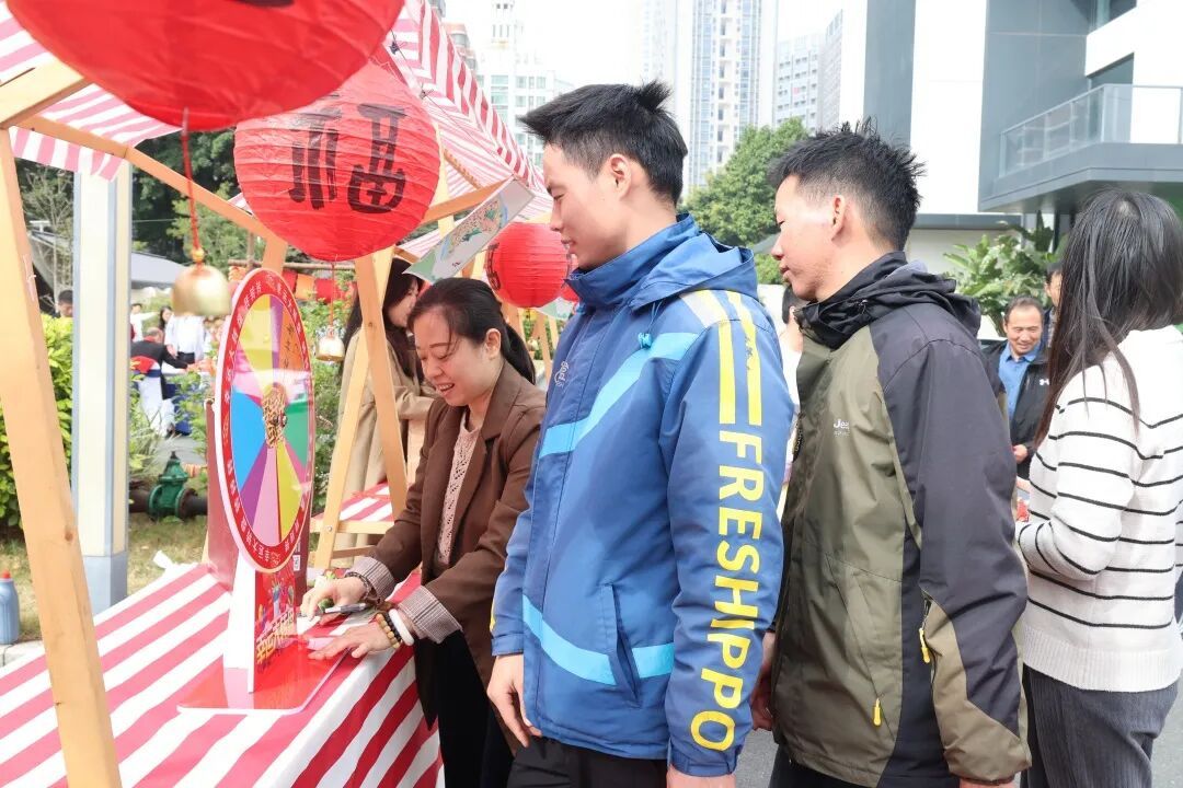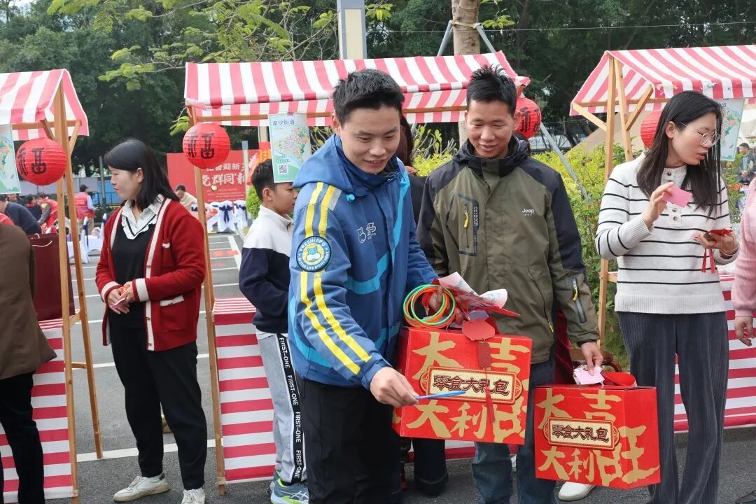新春互动游戏区传来阵阵欢笑,三个游戏摊位前围满了参与者。“套大鹅”“好运转转盘”等充满年味的趣味游戏让大人小孩都玩得不亦乐乎。每完成一个游戏,参与者都能获得一份小纪念品,增添了节日的喜庆氛围。