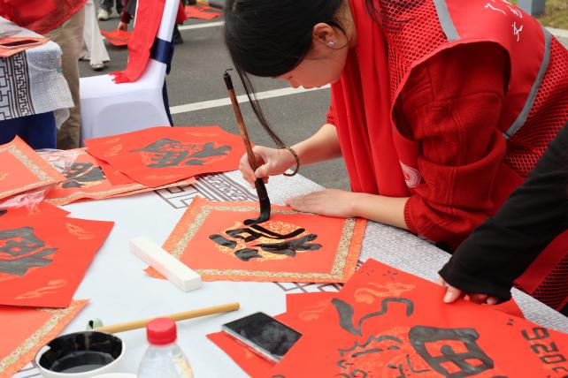 活动当天,湾区(南沙)退役军人就业创业实训基地人声鼎沸,洋溢着浓浓的节日气氛。翰墨迎春区内,几位书画艺术家挥毫泼墨,一幅幅寓意吉祥的春联、一张张苍劲有力的“福”字在笔尖流淌而出。不少新就业群体、附近居民驻足观赏,接过带着墨香的春联时,脸上洋溢着温暖的笑容。“这是我今年收到的第一份新春祝福,感觉很温暖。”一位外卖配送员感慨道。